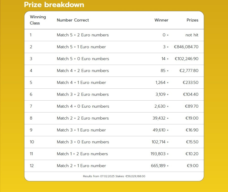 Τα 3 τυχερά δελτία που κερδίζουν 846.084,70€ παίχτηκαν στη Γερμανία, τη Δανία και την Πολωνία.