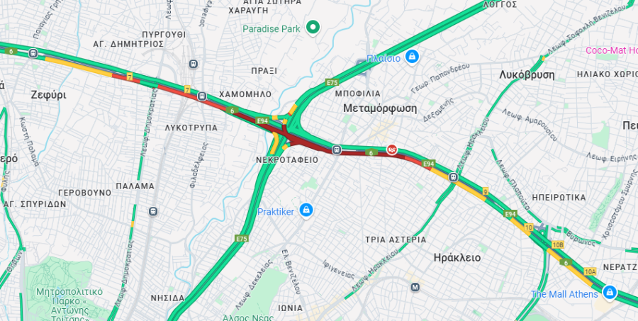 Αυξημένη είναι η κίνηση σε τμήμα της Αττικής οδού, εξαιτίας τροχαίου ατυχήματος.