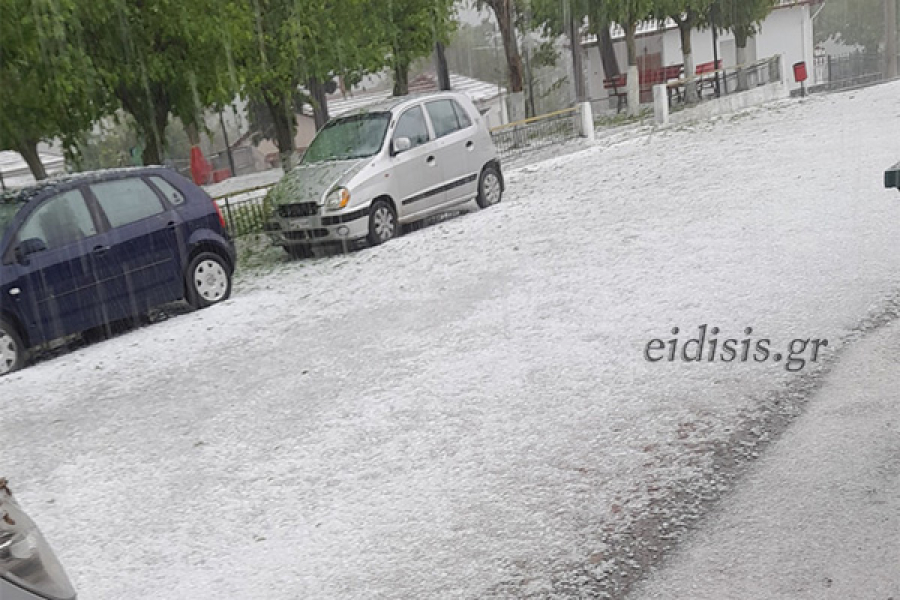 Το χαλάζι σε μέγεθο φουντουκιού, σύμφωνα με το eidisis.gr «έπεσε» με ένταση στην ευρύτερη περιοχή της λεκάνης της λίμνης Δοϊράνης και των Μουριών προκαλώντας ζημιές και σε καλλιέργειες.