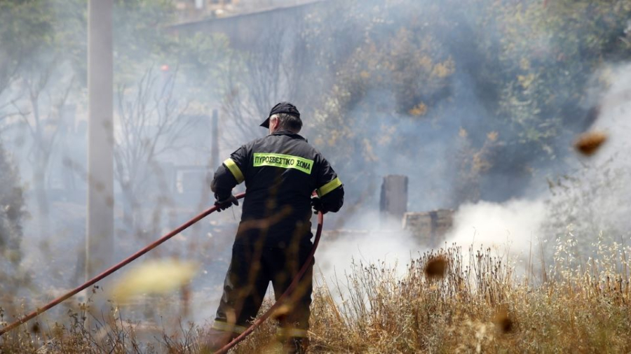 Η φωτιά καίει σε υπαίθρια έκταση με απορρίμματα κοντά στο τούνελ της Λεωφόρου Βάρης–Κορωπίου.
