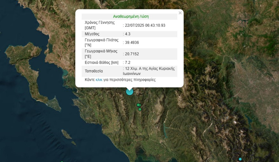 Σεισμός 4,3 Ρίχτερ σημειώθηκε στα Γιάνεννα πριν από λίγο.