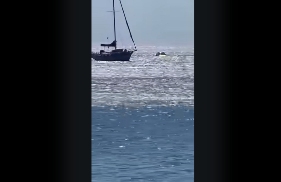 Σε βίντεο που ανάρτησε η ίδια ιστοσελίδα, φαίνεται το αυτοκίνητο μέσα στη θάλασσα, σε μικρή απόσταση από ένα ιστιοπλοϊκό σκάφος.