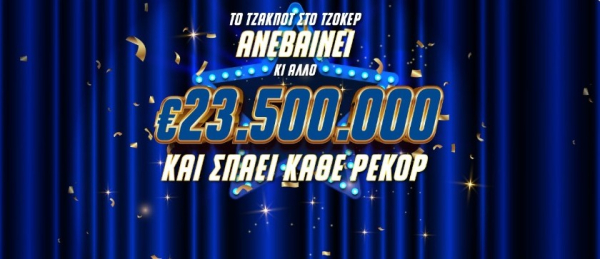 Το θερμόμετρο του ΤΖΟΚΕΡ χτυπάει «κόκκινο», με 23,5 εκατομμύρια ευρώ να περιμένουν έναν ή περισσότερους μεγάλους νικητές στην αποψινή κλήρωση. Το ποσό ρεκόρ, το οποίο έχει συγκεντρωθεί ύστερα από 42 συνεχόμενα τζακ ποτ, αποτελεί το μεγαλύτερο έπαθλο που έχει μοιράσει ποτέ το παιχνίδι στην ιστορία του.