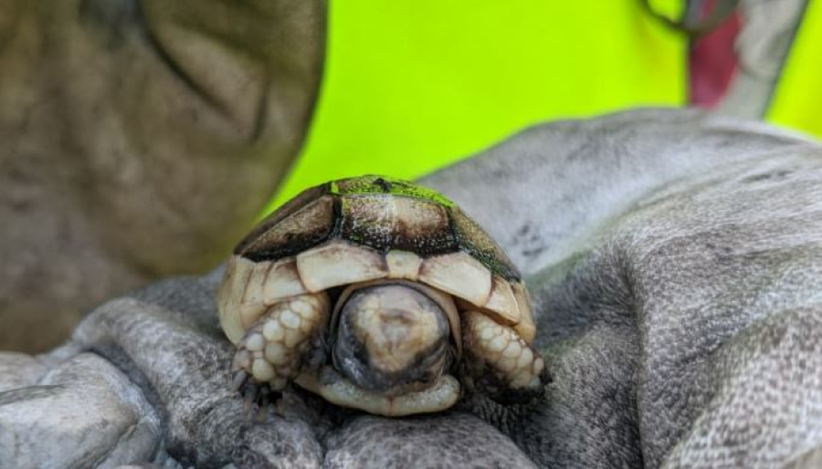 Έτσι συμβαίνει και με το λιλιπούτειο χελωνάκι που διασώθηκε από τις στάχτες της φωτιάς στην Κερατέα.