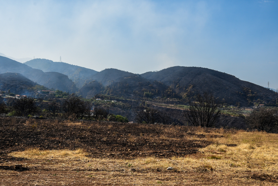 Σύμφωνα με την Πυροσβεστική η φωτιά καίει ξερά χόρτα σε οικοπεδικό χώρο και δεν υπάρχει απειλή για σπίτια που βρίσκονται στην περιοχή.