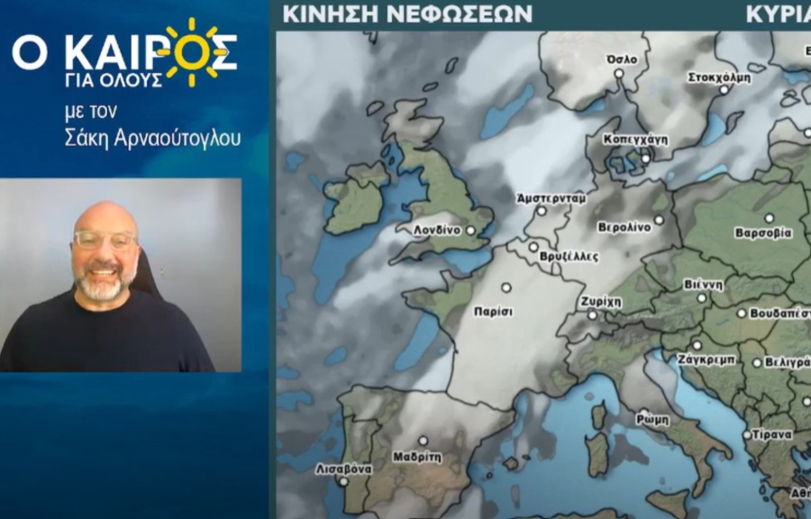 «Σήμερα η χώρα μας είναι πεντακάθαρη» ανέφερε αρχικά ο Σάκης Αρναούτογλου, με την ηλιοφάνεια να διατηρείται και την ερχόμενη εβδομάδα μέχρι «την Τετάρτη-Πέμπτη που θα έχουμε λίγες συννεφιές».