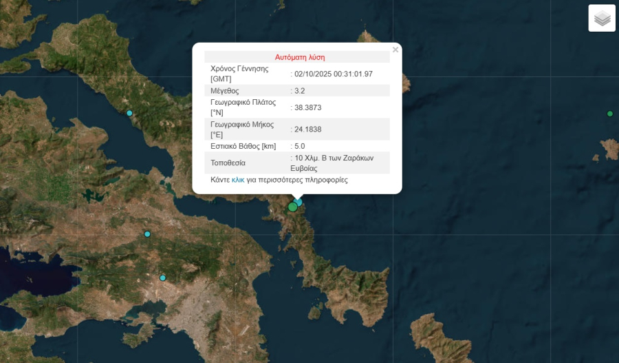 Ακολούθησε σεισμός 2,9 ρίχτερ που σημειώθηκε στις 03.34 με επίκεντρο 9 Χλμ. ΒΒΑ των Ζαράκων Ευβοίας.