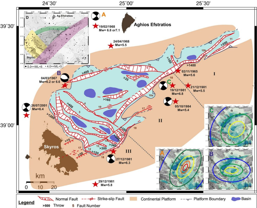Πρόκειται για τον πρώτο καταγεγραμμένο μηχανισμό γέννεσης που ενεργοποιεί ρήγμα με διεύθυνση ΒΔ–ΝΑ στο Βόρειο Αιγαίο, επιβεβαιώνοντας ότι αυτά τα ρήγματα παραμένουν ενεργά. Τέσσερα παράλληλα ρήγματα με ίδια διεύθυνση, τα οποία μπορούν να προκαλέσουν σεισμούς μεγέθους M ≥ 7,0, έχουν εντοπιστεί υποθαλάσσια προς τα ανατολικά του νησιού της Σκύρου. Η μετάβαση από την έκταση, που προκαλείται από τη νοτιοδυτική έλξη της ελληνικής ζώνης κατάδυσης, στη διατμητική κίνηση κατά μήκος της δυτικής προέκτασης του Βορείου Ρήγματος της Ανατολίας στο Βόρειο Αιγαίο και τη λεκάνη της Σκύρου αποτελεί χαρακτηριστικό παράδειγμα παγκοσμίως. Η τριγωνική γεωμετρία που παρατηρείται στις δύο λεκάνες του Αιγαίου μπορεί να χρησιμοποιηθεί ως πρότυπο για περιπτώσεις λοξής επέκτασης, ενδιάμεσες μεταξύ των συνήθων «pull-apart» λεκανών κατά μήκος ζωνών διαρρήξεων και τεκτονικών βυθισμάτων που σχηματίζονται κάθετα στις επεκτατικές τάσεις.» Παράλληλα σημειώνει ότι «η χαρτογράφηση του υποθαλάσσιου χώρο και ο εντοπισμός ενεργών ρηγμάτων είναι σημαντική για την ερμηνεία θαλάσσιων γεωκινδύνων.»