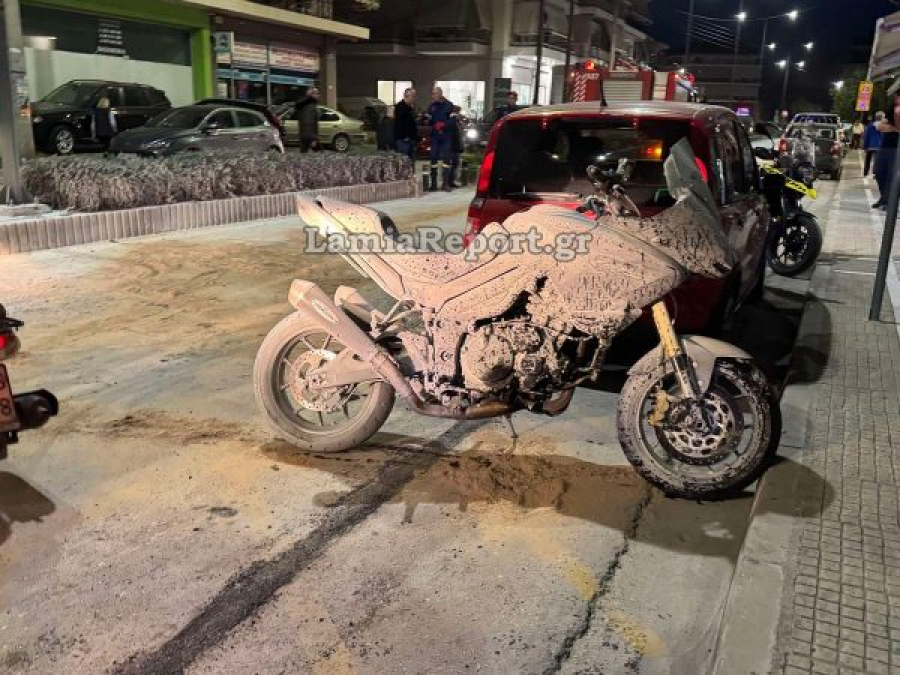 Σύμφωνα με πληροφορίες του lamiareport.gr, ο οδηγός του δικύκλου επιχείρησε να αποφύγει μια πεζή που προσπάθησε να διασχίσει κάθετα τον δρόμο. Από την απότομη αλλαγή πορείας, η μηχανή προσέκρουσε στο πίσω μέρος σταθμευμένου κόκκινου αυτοκινήτου έξω από κατάστημα και αμέσως ξέσπασε φωτιά.