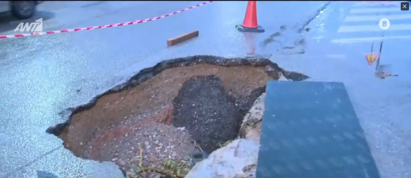 Συγκλονιστικές είναι οι εικόνες με τις τρύπες στο οδόστρωμα, που καταδεικνύουν την ένταση των φαινομένων.