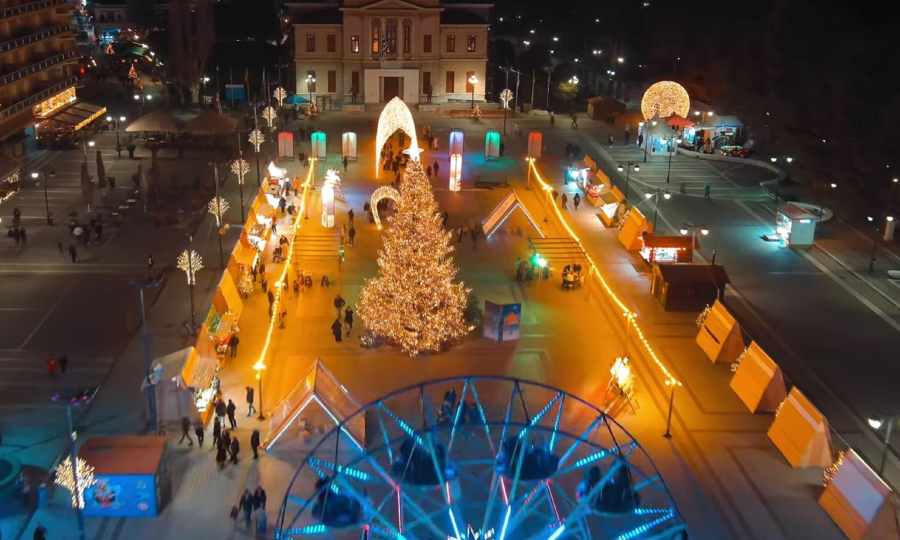 Η πλατεία Άρεως και οι κεντρικοί δρόμοι της πόλης στολίζονται με λαμπιόνια, χριστουγεννιάτικα δέντρα και φωτεινά διακοσμητικά. Τα καταστήματα φωτίζουν τις βιτρίνες τους, ενώ οι καφετέριες γεμίζουν με κόσμο που απολαμβάνει ζεστά ροφήματα και γλυκά. Οι ήχοι από χριστουγεννιάτικα τραγούδια δίνουν έναν χαρούμενο τόνο στην καθημερινότητα.