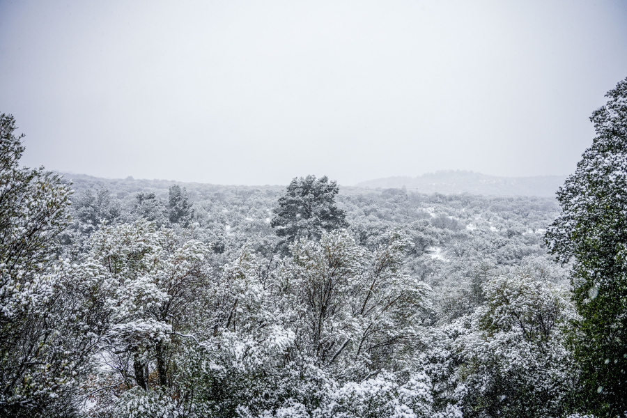 Χιονίζει στο Γεωργίτσι Λακωνίας, 800 μέτρα υψόμετρο στον βορειοανατολικό Ταϋγετο