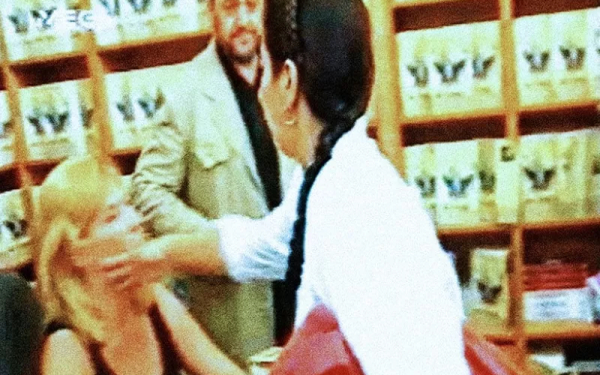 Τότε, σύμφωνα με μαρτυρίες, δήλωσε ότι «δεν καταδέχεται να πάρει το βιβλίο» και αμέσως μετά τη χαστούκισε. Το στιγμιότυπο καταγράφηκε από τηλεοπτικές κάμερες και μεταδόθηκε σε ολόκληρη τη χώρα, προκαλώντας κύμα αντιδράσεων.