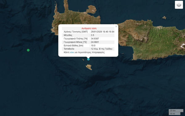 Σεισμός σημειώθηκε νότια της Κρήτης, νωρίς το βράδυ της Δευτέρας και το επίκεντρο ήταν κοντά στη Γαύδο.