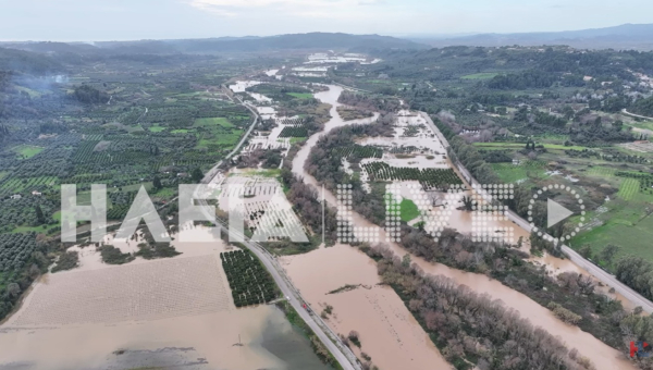Κατά χιλιάδες έχουν πλημμυρίσει οι εκτάσεις και κυρίως τα χωράφια και οι καλλιέργειες στην Ηλεία από την υπερχείλιση του Αλφειού.