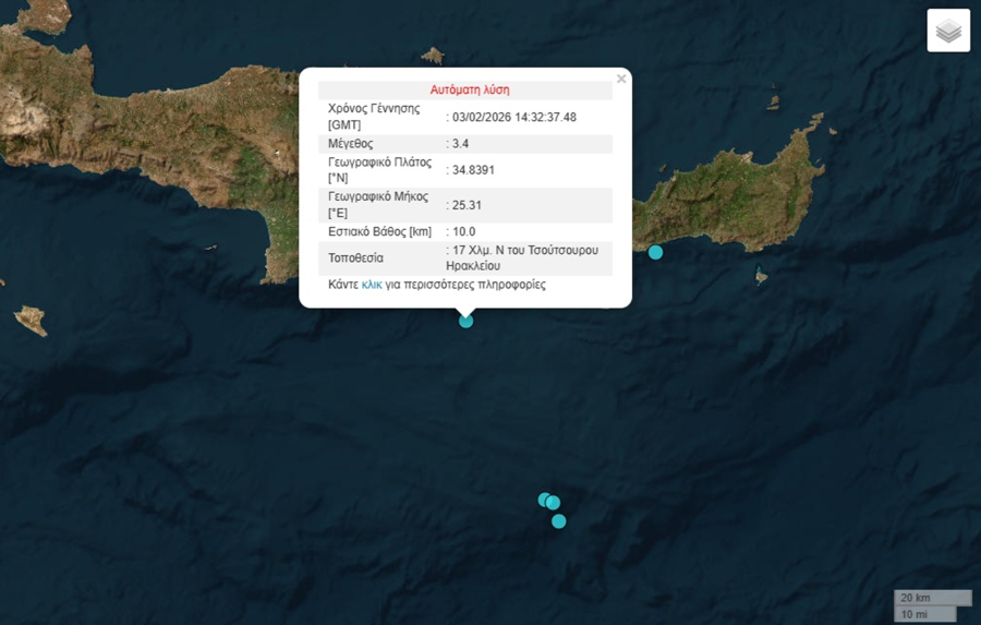 Ειδικότερα, η δόνηση μεγέθους 3,4 Ρίχτερ- σύμφωνα με την αυτόματη λύση του Γεωδυναμικού Ινστιτούτου- καταγράφηκε στις 16:32.