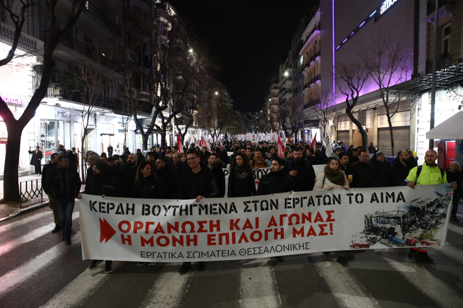 Πορεία διαμαρτυρίας πραγματοποίησαν τα εργατικά σωματεία και φοιτητικοί σύλλογοι στη Θεσσαλονίκη, με αφορμή το εργατικό δυστύχημα στην μπισκοτοβιομηχανία «Βιολάντα».