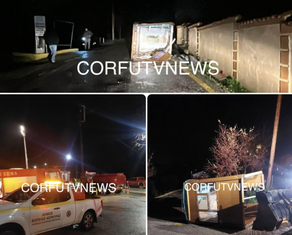 Ανεμοστρόβιλος άφησε πίσω του πολλές καταστροφές στην Κέρκυρα, η έντονη βροχή πλημμύρισε δρόμος στην Κεφαλονιά.