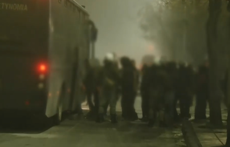 Σημειώθηκαν επεισόδια έξω από την Πολυτεχνική Σχολή με την Αστυνομία να προχωρά σε μαζικές προσαγωγές.