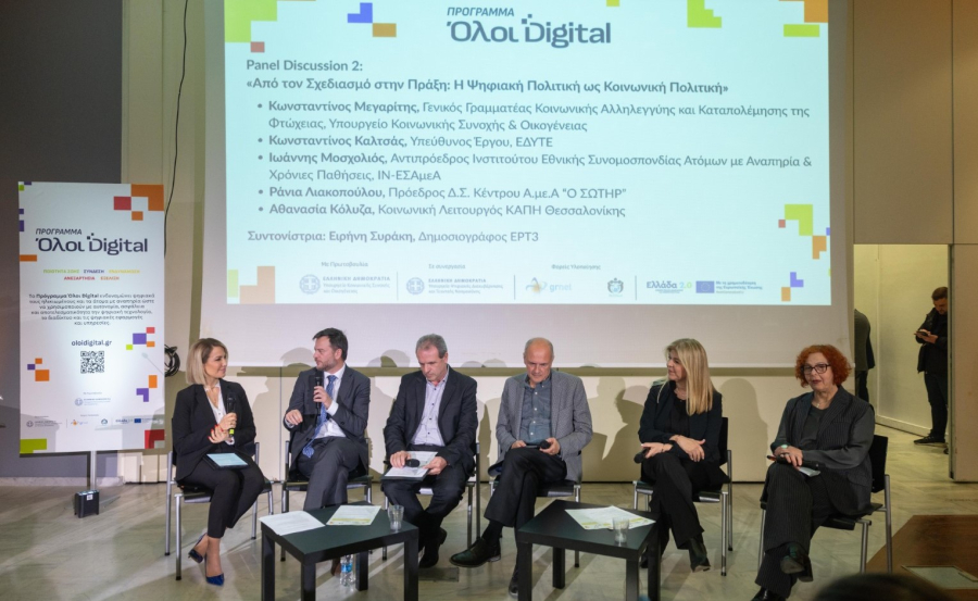 Η εθνική πρωτοβουλία «Όλοι Digital», που στοχεύει στην ψηφιακή ενδυνάμωση των ηλικιωμένων και των ατόμων με αναπηρία, παρουσιάστηκε την Παρασκευή 6 Μαρτίου 2026 στη Θεσσαλονίκη, σε εκδήλωση που συνδιοργάνωσαν το Υπουργείο Κοινωνικής Συνοχής και Οικογένειας και το Υπουργείο Ψηφιακής Διακυβέρνησης και Τεχνητής Νοημοσύνης.