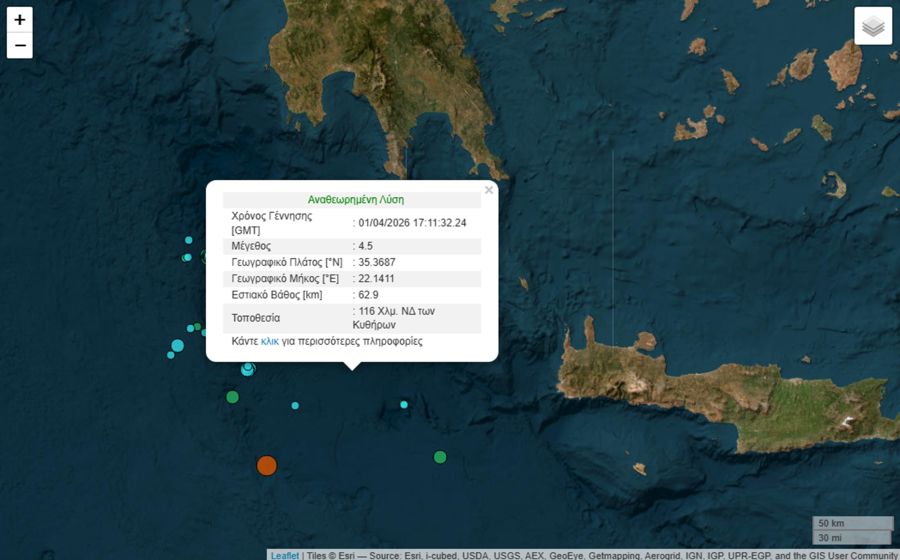 Στις 20:11 καταγράφηκε δόνηση μεγέθους 4,5 Ρίχτερ, σύμφωνα με την αναθεωρημένη λύση του Γεωδυναμικού Ινστιτούτου.