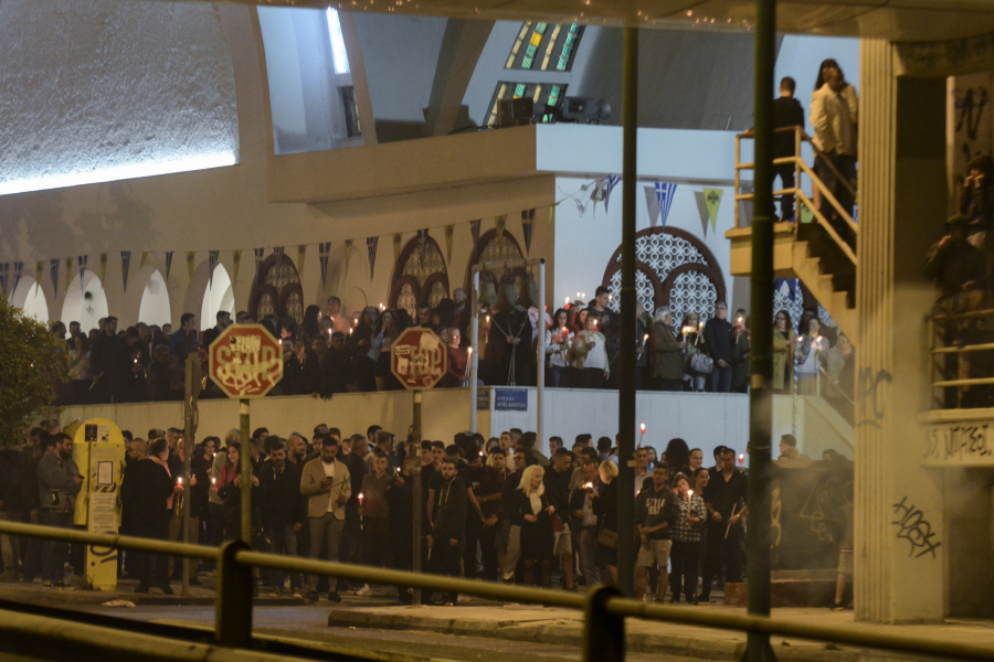 Σε ολόκληρη την ευρύτερη περιοχή είχε αναπτυχθεί ισχυρή αστυνομική δύναμη, στο πλαίσιο συγκεκριμένου επιχειρησιακού σχεδίου. Πριν ακόμη φτάσουν οι πολίτες στον ναό, πραγματοποιούνταν έλεγχοι σε σακίδια στην οδό Λαγουμιτζή και σε σημεία πρόσβασης της περιοχής.