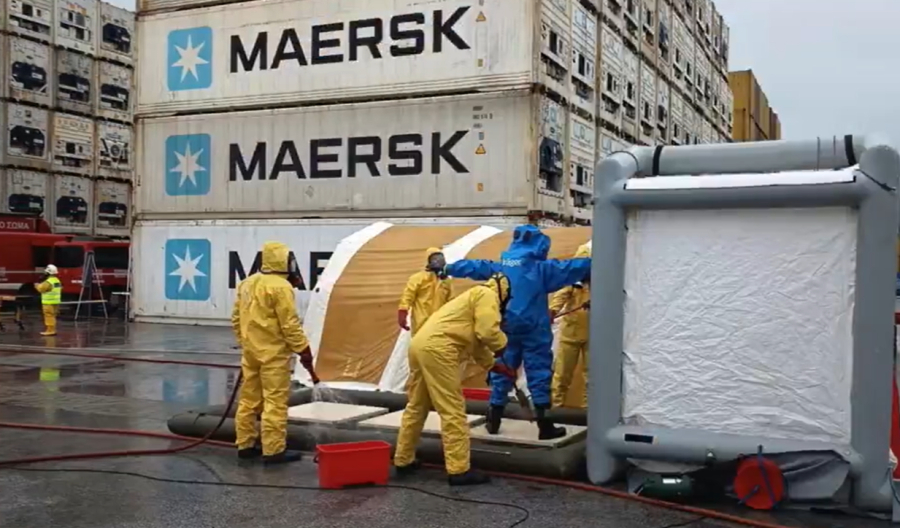 Εντυπωσιακή άσκηση ετοιμότητας του Πυροσβεστικού Σώματος σε περίπτωση χημικής, βιολογικής, ραδιολογικής και πυρηνικής απειλής πραγματοποιήθηκε στο λιμάνι της Θεσσαλονίκης.