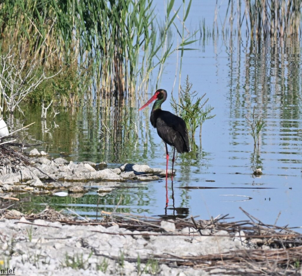 Ένας σπάνιος μαυροπελαργός έκανε την εμφάνισή του στα νερά της λίμνης Κάρλα και εντυπωσίασε το κοινό που το θαύμαζε.