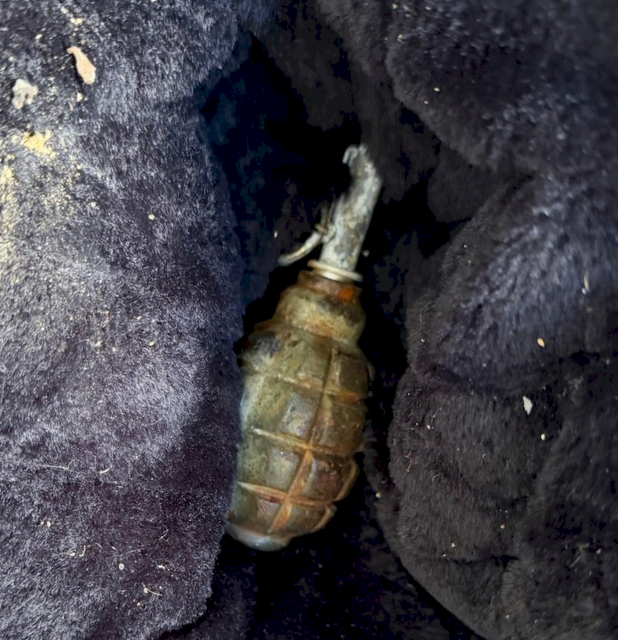αμυντική χειροβομβίδα, επιμελώς κρυμμένη στο μπαλκόνι διαμερίσματος,