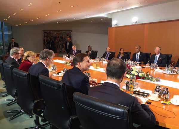 Το επίσημο μέρος της επίσκεψης Ομπάμα στο Βερολίνο ξεκίνησε σήμερα το απόγευμα, με την κ. Μέρκελ να υποδέχεται τον Πρόεδρο των ΗΠΑ στην καγκελαρία. Οι συνομιλίες θα διαρκέσουν περίπου μέχρι τις 6, ενώ στη συνέχεια οι δύο ηγέτες θα κάνουν δηλώσεις στον Τύπο.