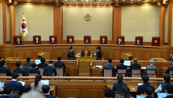 Οι ενέργειες της Παρκ Γκιούν-Χιε «παραβίασαν σοβαρά το πνεύμα...της δημοκρατίας και του κράτους δικαίου», δήλωσε ο πρόεδρος του Συνταγματικού Δικαστηρίου. «Η πρόεδρος Παρκ Γκιούν-Χιε απομακρύνθηκε».