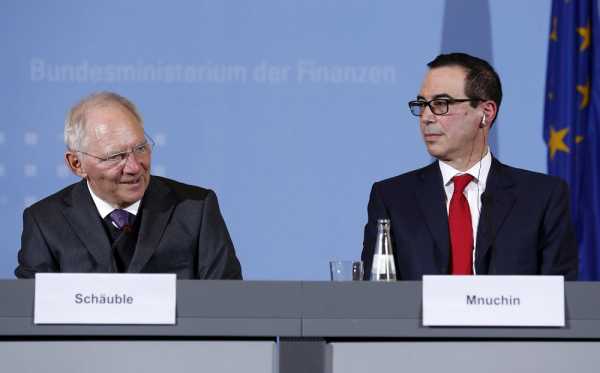 Ο Αμερικανός υπουργός Οικονομικών διαβεβαίωσε ότι : "Δεν θέλουμε εμπορικό πόλεμο". Βασικό ζήτημα είναι "ένα ισορροπημένο εμπόριο μεταξύ των δύο οικονομιών. Οι ανισορροπίες πρέπει να εξαλειφθούν. Απώτερος στόχο μας είναι η οικονομική ανάπτυξη". Ο Στίβεν Μνουσίν διαβεβαίωσε τον κ. Σόιμπλε ότι ο Ντόναλντ Τραμπ πιστεύει στο ελεύθερο εμπόριο, "πρέπει όμως να είναι έντιμο."