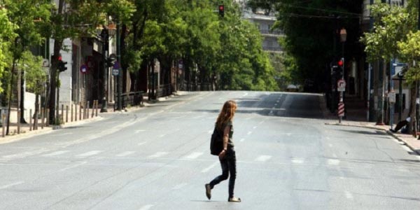 Άδειο και φέτος το κέντρο της Αθήνας ανήμερα του Δεκαπενταύγουστου. Με τα μαγαζιά κλειστά, ελάχιστα καφενεία και περίπτερα ανοιχτά, σχεδόν δεν βλέπεις άνθρωπο. Στο Παναθηναϊκό Στάδιο, στην Πλάκα, στη Διονυσίου Αρεοπαγίτου και στο Σύνταγμα συναντάμε κάποιους τουρίστες με τους τουριστικούς οδηγούς και τα καπέλα τους, αφού ο ήλιος καίει. Στους δρόμους κυκλοφορούν ελάχιστα αυτοκίνητα και στις στάσεις των λεωφορείων και του τραμ πού και πού περιμένει κάποιος ηλικιωμένος.