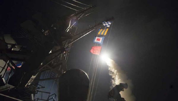 Αμερικανός αξιωματούχος δήλωσε νωρίτερα ότι στόχος ήταν η αεροπορική βάση στην κεντρική πόλη Χομς, από την οποία απογειώθηκαν τα συριακά μαχητικά που έκαναν ρίψη των χημικών όπλων. Σύμφωνα με τον ίδιο αξιωματούχο, οι πύραυλοι εκτοξεύθηκαν από δύο αεροπλανοφόρα στη Μεσόγειο Θάλασσα.