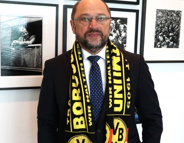 Ο κ. Σουλτς φωτογραφήθηκε με κασκόλ της γερμανικής ομάδας και έγραψε στο Twitter: