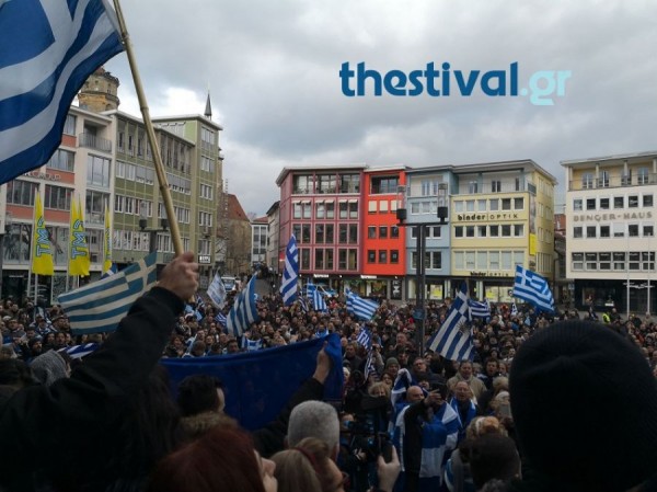 Με σύνθημα "η Μακεδονία είναι ελληνική", χιλιάδες Έλληνες διαδήλωσαν σήμερα στη Στουτγκάρδη της Γερμανίας.