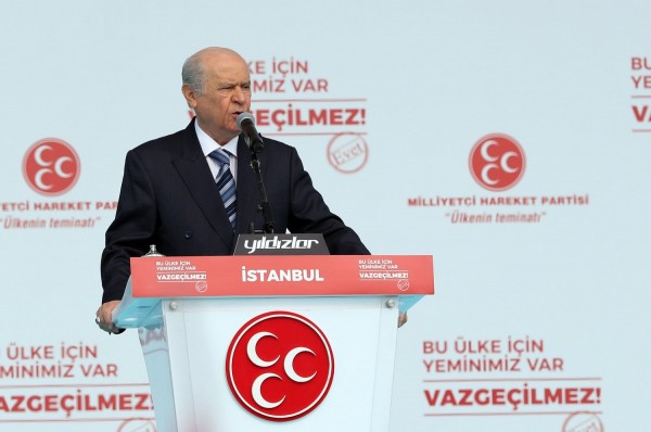 Μιλώντας στο ιδιωτικό τηλεοπτικό δίκτυο NTV αργά χθες το βράδυ, ο Μπαχτσελί σημείωσε ότι το δημοψήφισμα χορηγεί είτε στον πρόεδρο είτε στο κοινοβούλιο την εξουσία να προκηρύξουν πρόωρες εκλογές αν υπάρξει "κώλυμα" - για παράδειγμα αν ο Ερντογάν κερδίσει την προεδρία, αλλά το κόμμα του χάσει την κοινοβουλευτική πλειοψηφία.