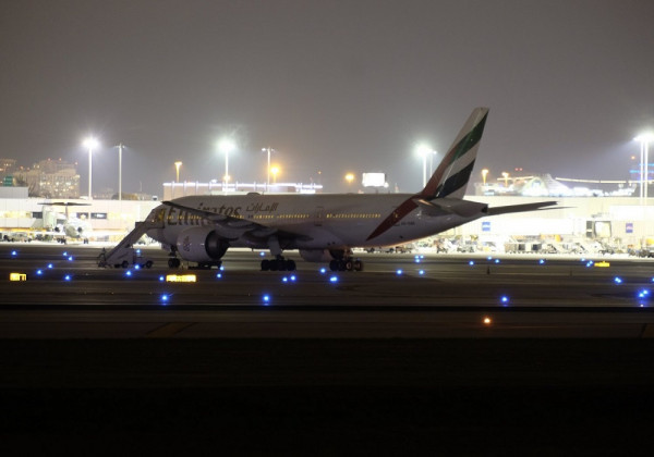 Το αεροπλάνο --ένα Airbus380-- μεταφέρθηκε μακριά από τους διαδρόμους προσγείωσης και απογείωσης, μέχρι αξιωματούχοι υπηρεσιών εκτάκτων καταστάσεων να αποτιμήσουν την κατάσταση, ανέφερε ανακοίνωση της Λιμενικής Αρχής της Νέας Υόρκης και του Νιου Τζέρσι.