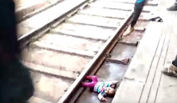 Μόλις το τρένο έφυγε, ένας άνδρας μάζεψε το παιδί, που ήταν σώο και αβλαβές.