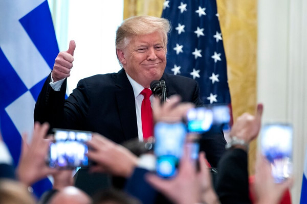 Κρατώντας στα χέρια του ένα καπέλο που έγραφε στα ελληνικά «κάντε την Αμερική μεγάλη ξανά», ο πρόεδρος των ΗΠΑ φαίνεται πως «χάθηκε στη μετάφραση» και απέδωσε τη φράση ως «make Greece great again».