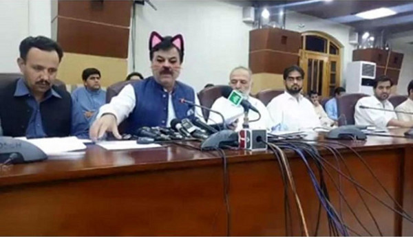 Η συνέντευξη του υπουργού Εσωτερικών Σαουκάτ Γιουσαφζάι δινόταν στην πόλη Πεσάβαρ, την πρωτεύουσα της Χιμπέρ Παχτούνκουα. Από λάθος των συνεργάτων του, ο Γιουσαφζάι εμφανίστηκε στις οθόνες των υπολογιστών με ροζ αυτιά και μαύρα, μακριά μουστάκια, πάνω από το δικό του.