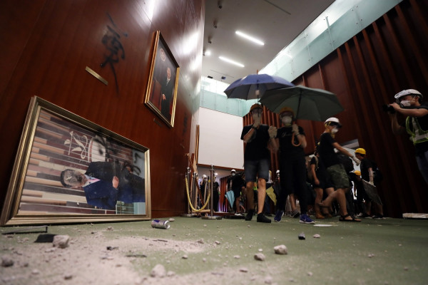Δεκάδες άνθρωποι, με καλυμμένα τα πρόσωπά τους, πολλοί εκ των οποίων κρατώντας αυτοσχέδιες ασπίδες, διείσδυσαν στο Νομοθετικό Συμβούλιο (LegCo), καταφέρνοντας να μπουν έπειτα από προσπάθειες ωρών, μεταδίδει το τηλεοπτικό δίκτυο i-Cable News. Οι δυνάμεις επιβολής του νόμου, που είχαν αναπτυχθεί εντός του κτιρίου και νωρίτερα έκαναν χρήση σπρέι πιπεριού για να απωθήσουν το πλήθος, οπισθοχώρησαν προς το εσωτερικό. Κατά τη διάρκεια των επεισοδίων, ανήμερα της 22ης επετείου της παράδοσης της κυριαρχίας του Χονγκ Κονγκ από τη Βρετανία στην Κίνα, οι διαδηλωτές κατέστρεψαν πίνακες ζωγραφικής, έσπασαν πόρτες, έγραψαν συνθήματα στους τοίχους, εκφράζοντας την οργή τους για το προτεινόμενο νομοσχέδιο που θα ανοίγει τον δρόμο για τις απελάσεις υπόπτων στην Κίνα.