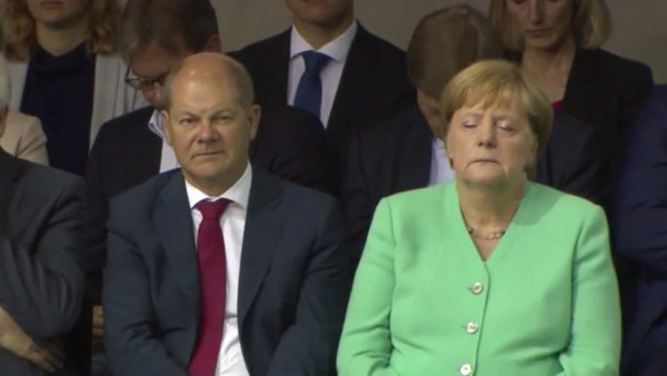 Κατά την ορκομωσία της Ανεγκρέτ Κραμπ - Κάρενμπαουερ στη θέση της Υπουργού Άμυνας, η καγκελάριος της Γερμανίας συνελήφθη από τη κάμερα να κρατά τα μάτια της κλειστά και να χασμουριέται.