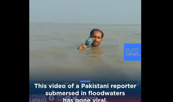 Ο Azadar Hussain εργάζεται σε ένα τοπικό κανάλι στο Πακιστάν και κατάφερε να κάνει ένα ζωντανό ρεπορτάζ, ενώ μόνο το κεφάλι και το μικρόφωνο του δεν είχαν καλυφθεί από νερό.