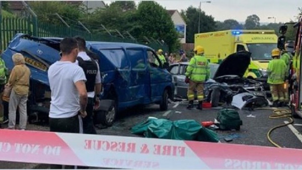 Το περιστατικό σημειώθηκε λίγο μετά τις 12 το μεσημέρι, στον δρόμο Whiterock όταν ένα αυτοκίνητο έπεσε πάνω σε πλήθος κόσμου.