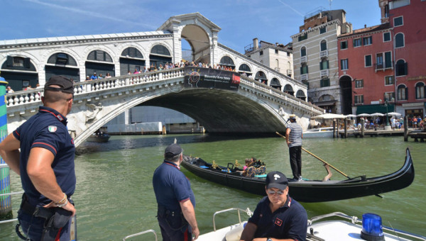 Περίπου έξι γονδολιέρηδες βουτούσαν από τις έξι το απόγευμα ως τα μεσάνυκτα κοντά στη διάσημη γέφυρα του Ριάλτο.