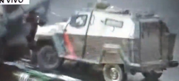 Βίντεο που δόθηκε στη δημοσιότητα δείχνει ένα όχημα της αστυνομίας να αναπτύσσει ταχύτητα, να κτυπά με δύναμη έναν διαδηλωτή και να τον εκτοξεύσει τουλάχιστον 50 μέτρα απόσταση.