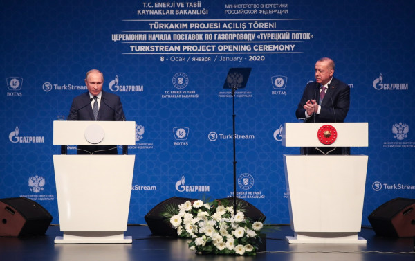 Μετά τη συνάντηση οι δύο ηγέτες πέρασαν στην αίθουσα της τελετής για τα εγκαίνια του αγωγού Turkish Stream με τον οποίο θα μεταφερθεί το ρωσικό αέριο στην Ευρώπη.