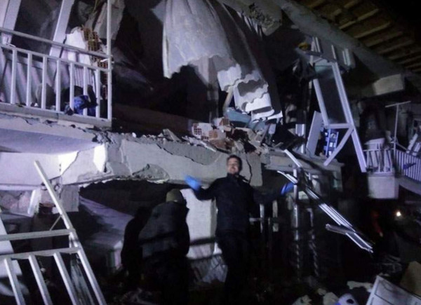 Η δημόσια τηλεόραση ΤΡΤ έδειξε εικόνες στις οποίες αστυνομικοί και διασώστες ερευνούν ένα κτίριο που έχει καταρρεύσει εν μέρει στο Ελαζίγ. Τα τζάμια των παραθύρων έσπασαν και τα μπαλκόνια έπεσαν στο έδαφος.