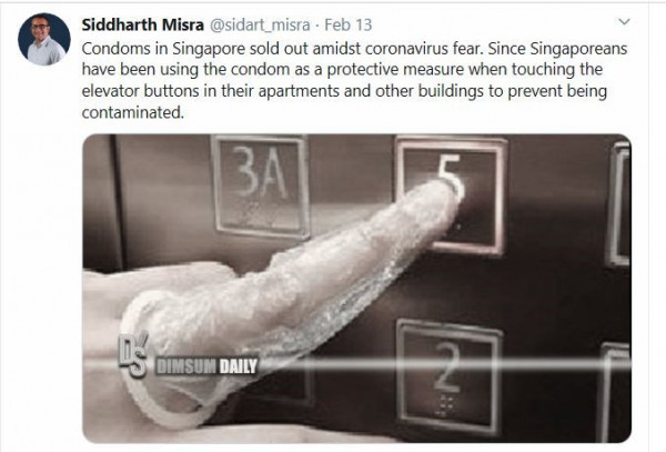 Άλλος χρήστης σχολίασε ότι τα προφυλακτικά ξεπούλησαν στη Σιγκαπούρη από τον φόβο του κορονοϊού καθώς θεωρείται μέσο προστασίας από τον ιό.